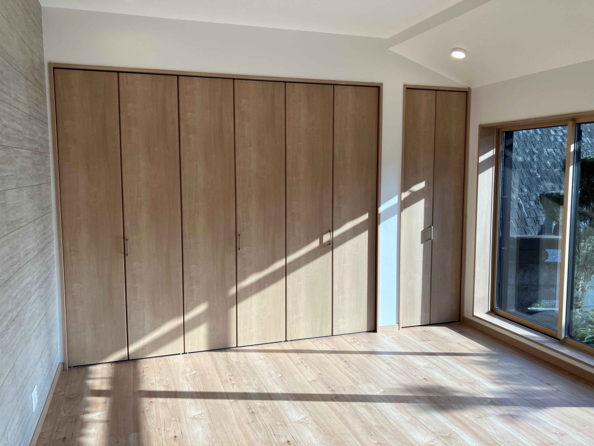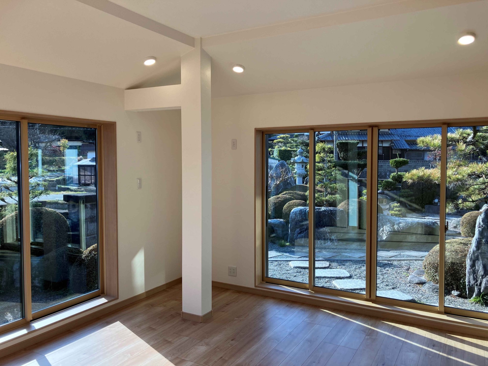 畳をフローリングに張り替え和室から洋室へ改修しました。間仕切りをなくして、広い空間に生まれ変わりました。建具の取り換え、クロスの張り替えにより、さらに明るいお部屋となっています。