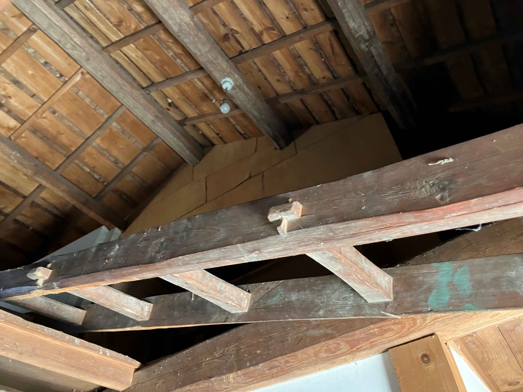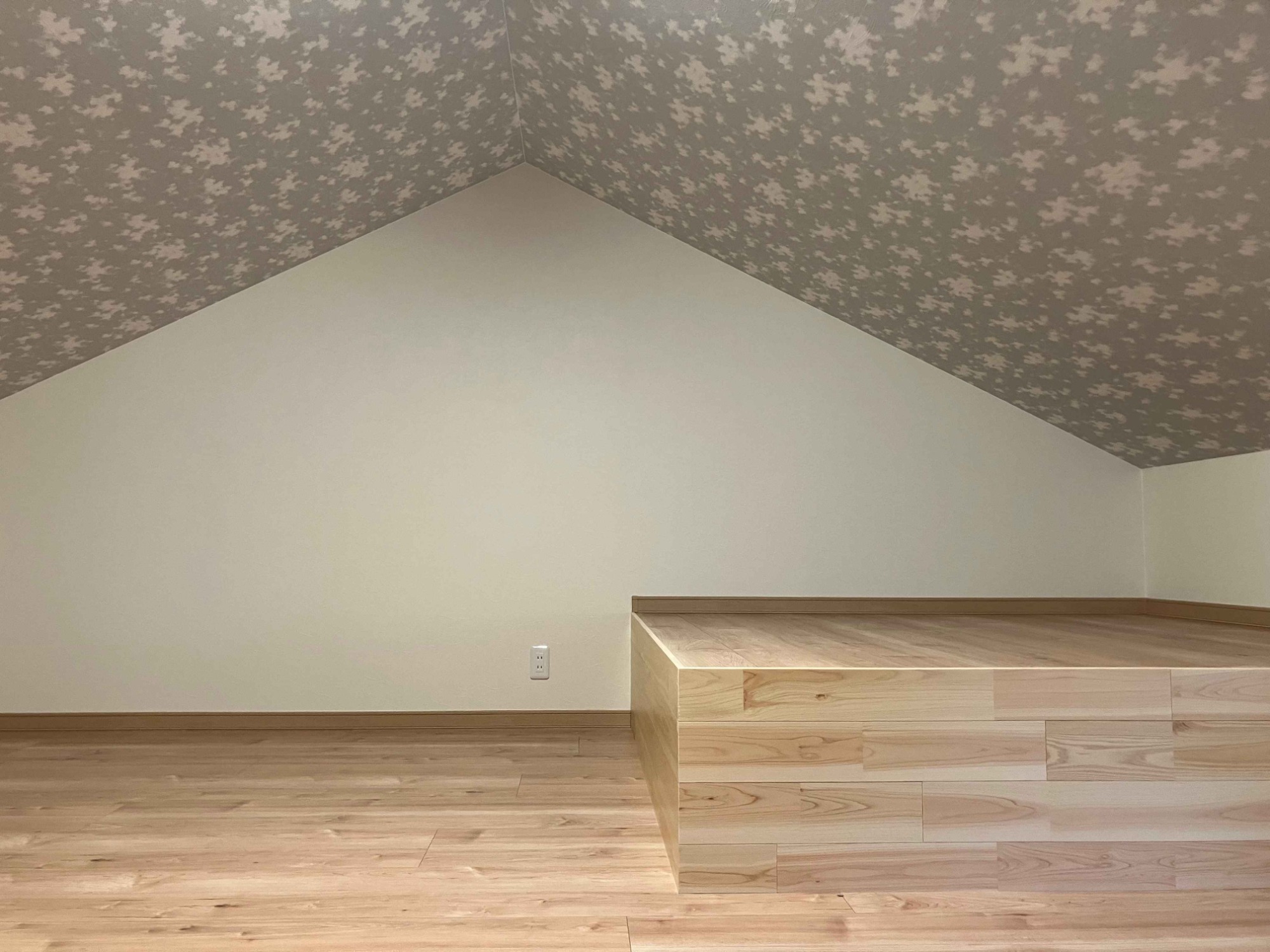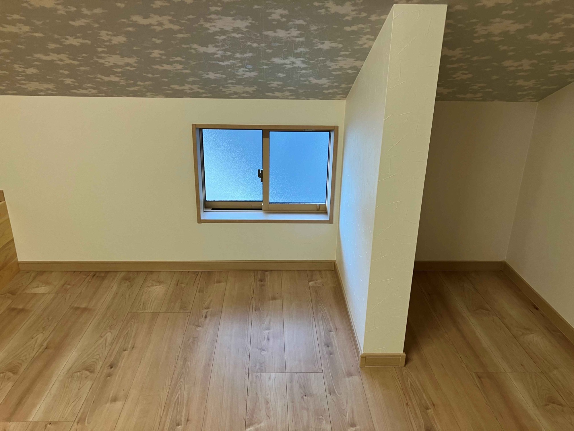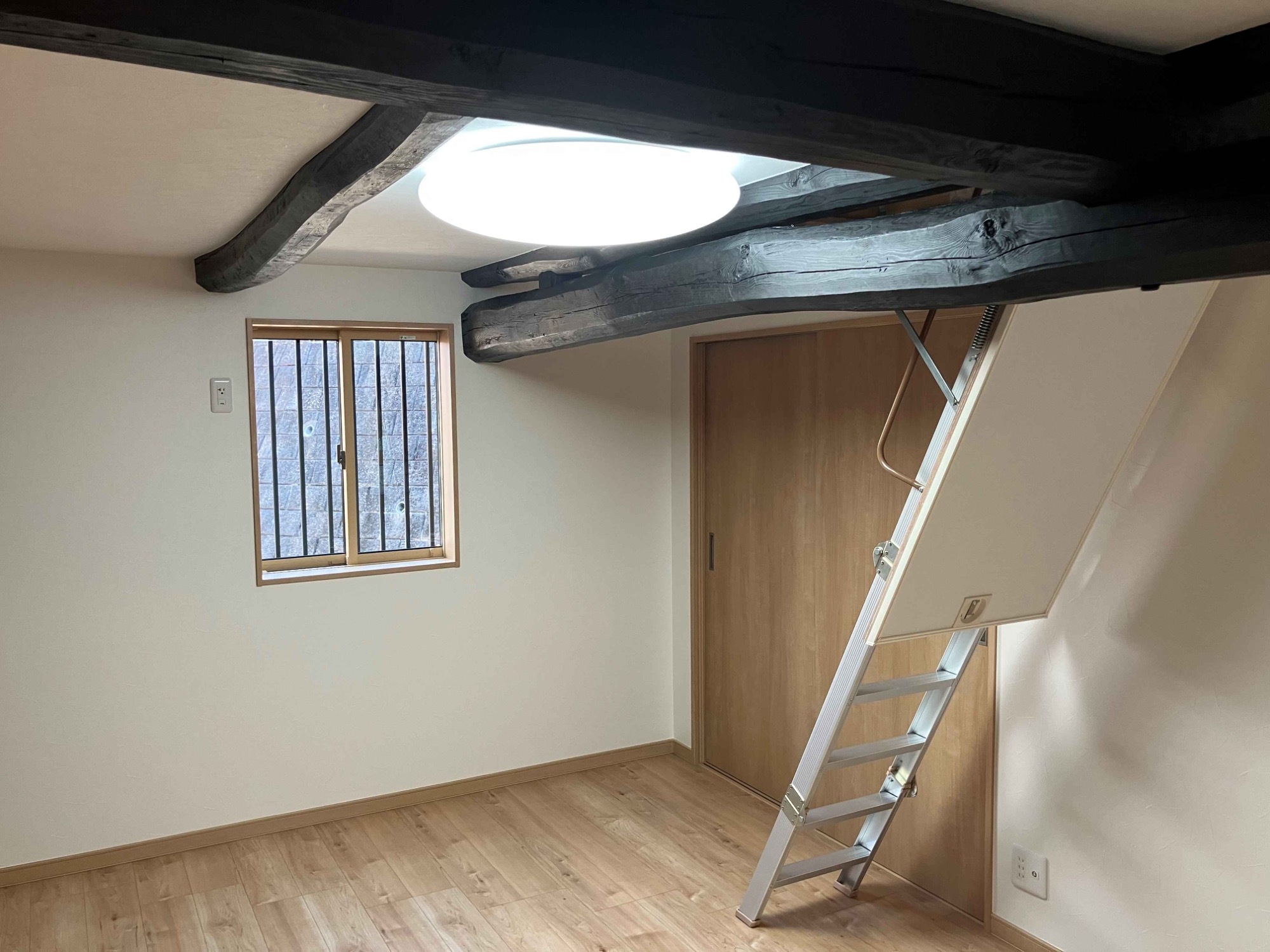 土間を洋室に改修。小屋裏収納はしごを設置しています。
