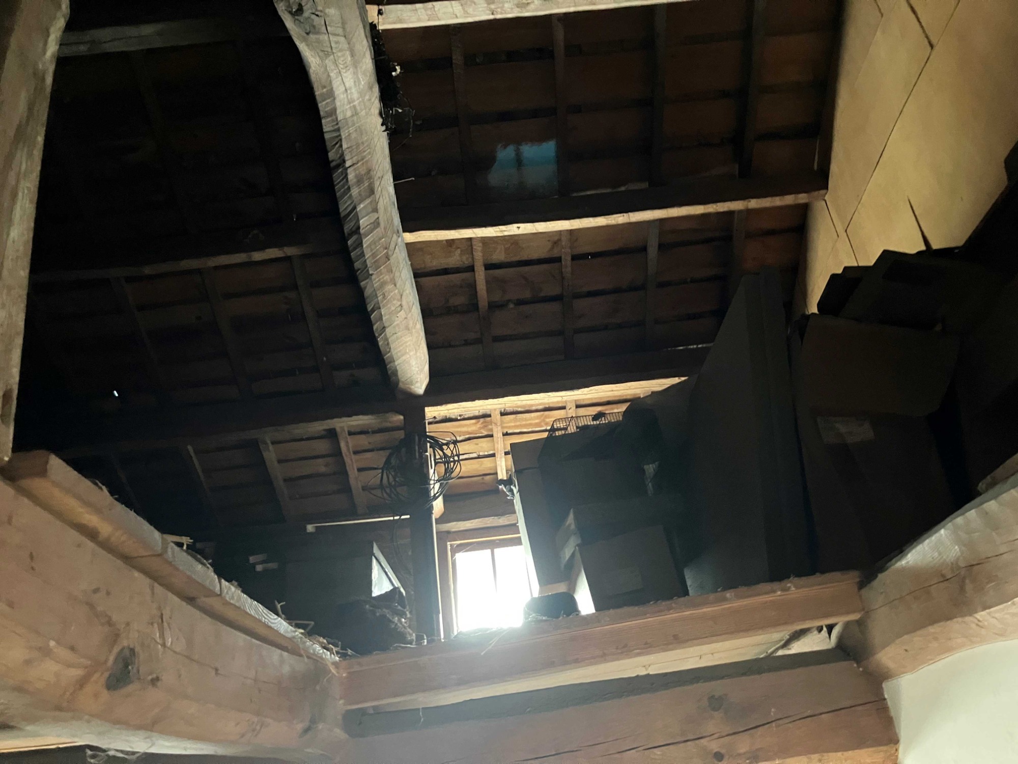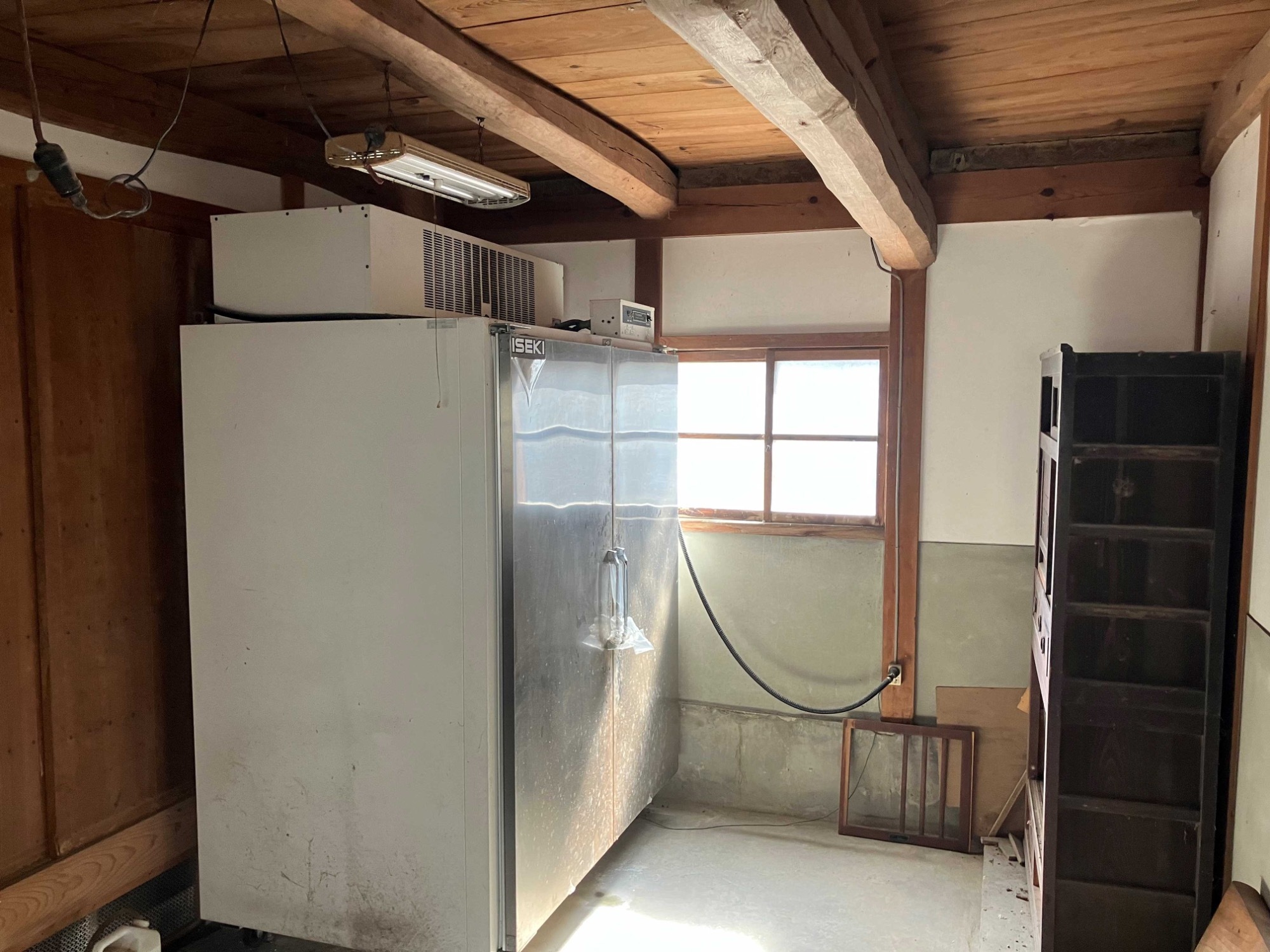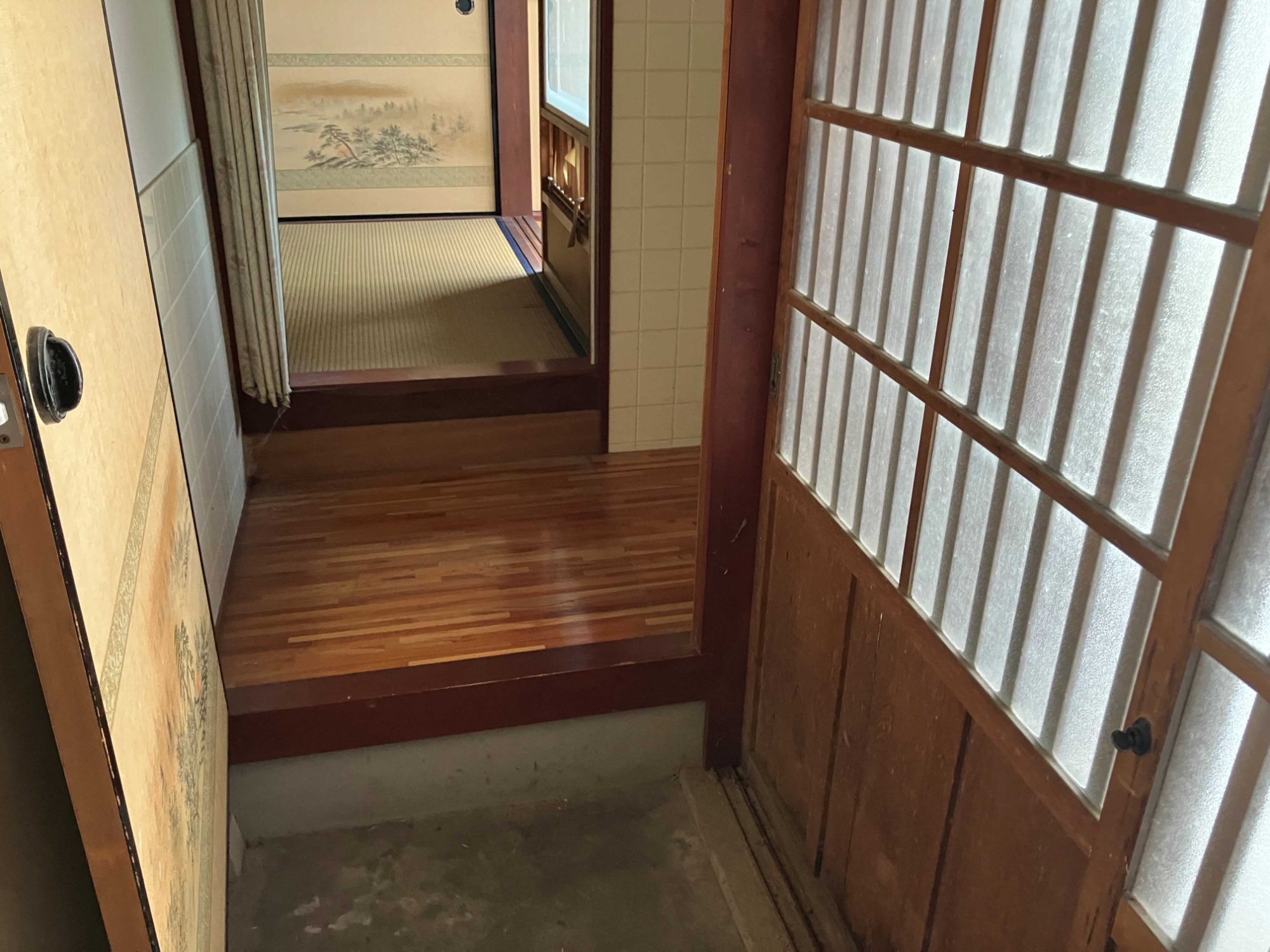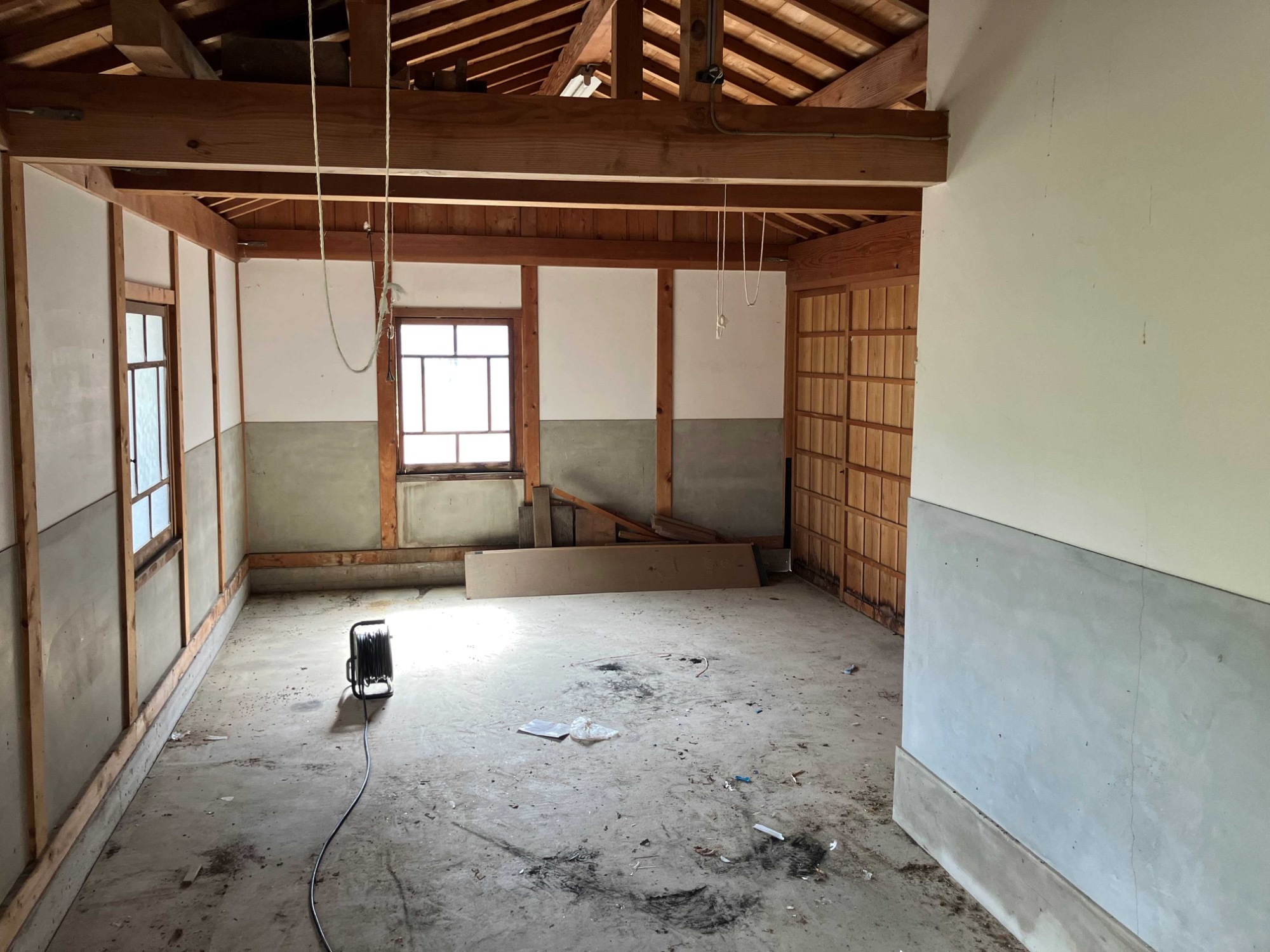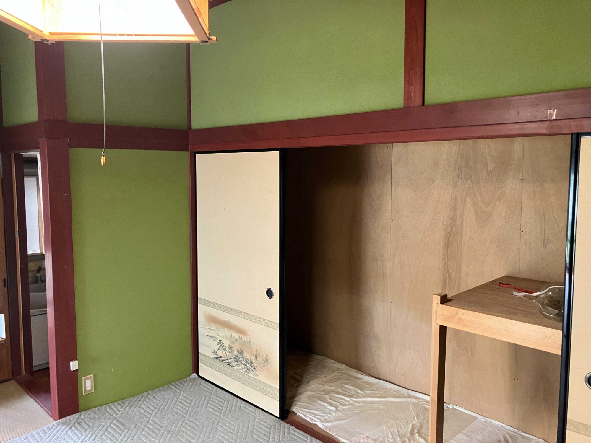 土間を洋室に改修。小屋裏収納はしごを設置しています。